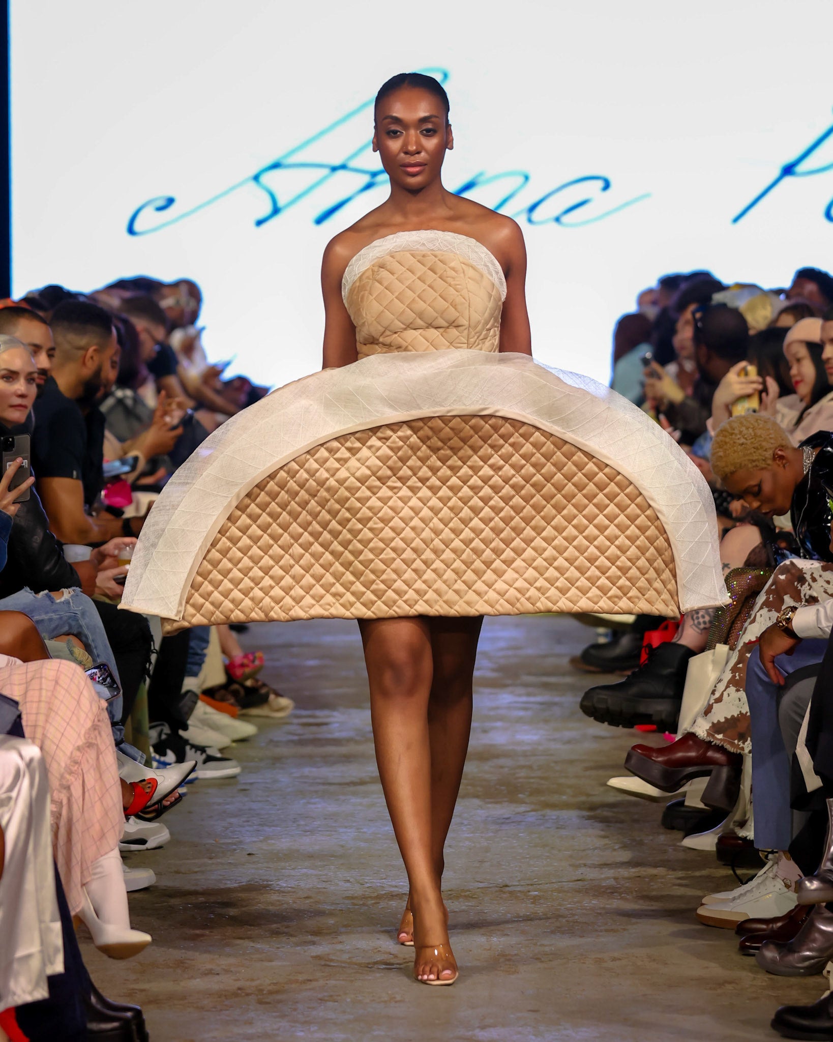 This collection is inspired by the architecture of ancient churches in Georgia. On her trip, Anna was mesmerized by thousand-year-old churches that are still standing today, unaffected by the elements. Anna envisioned how their strong lines and well-defined geometry can be transferred to the runway. By using haute-couture techniques and pattern-making processes, she is creating truly high-fashion pieces. Anna is working with a mix of heavyweight, such as neoprene and heavy satin, and lightweight, such as silk organza and tulle, fabrics to recreate the contrast between solid concrete walls and light airy domes of the Georgian churches.